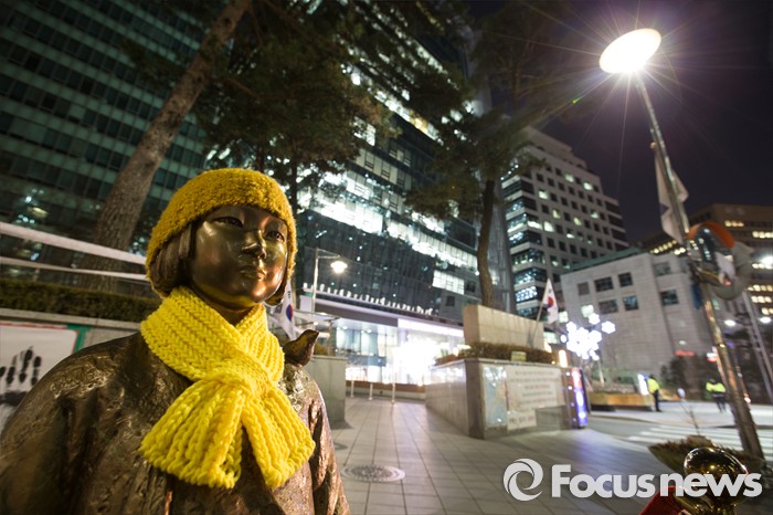 2014년 8월 기준으로 중국인 위안부 피해 여성은 오직 23명이 생존해 있으며 대만에선 4명밖에 남아있지 않은 것으로 알려졌다.(서울=포커스뉴스) 한일 외교장관이 회담을 열어 일본군 위안부 문제를 극적으로 타결지은 28일 오후 서울 종로구 주한 일본대사관 앞에 세워진 소녀상이 자리를 지키고 있다. 2015.12.28 김흥구 기자