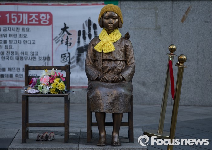 한편 30일 일본의 극우성향 언론 산케이신문은 중국 공산당 관계자가 "중국 혼자 대일 비판은 어렵다. 내년엔 중일관계도 회복할지 모른다"고 내다봤다고 전했다.(서울=포커스뉴스) '일본군 위안부 문제 해결'을 위한 한일 외교장관 협상이 열리는 28일 오후 서울 중학동 일본대사관 앞에 설치된 일본군 위안부 소녀상에 노란 목도리가 둘러져 있다. 2015.12.28 김흥구 기자