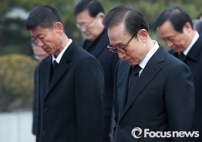 (서울=포커스뉴스) 병신년(丙申年) 새해 첫 날인 1일 오전 동작구 국립서울현충원에서 이명박 전 대통령이 현충탑 참배를 하고 있다.