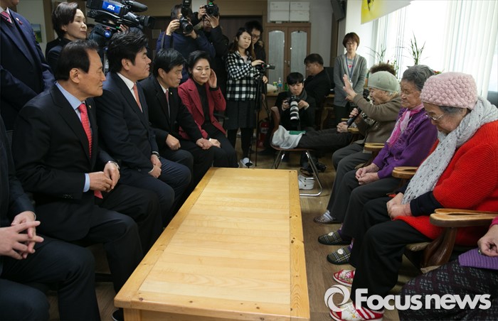 (광주=포커스뉴스) 병신년(丙申年) 새해 첫 날인 1일 오후 원유철 새누리당 원내대표 등 의원들이 경기도 광주 일본군 위안부 피해자 쉼터 나눔의 집을 방문해 할머니들과 간담회를 하고 있다.