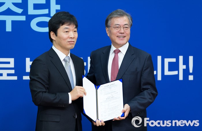 (서울=포커스뉴스) 더불어민주당의 제20대 총선을 위한 외부인재 영입 2호로 김병관 웹젠 이사회 의장이 3일 입당했다.