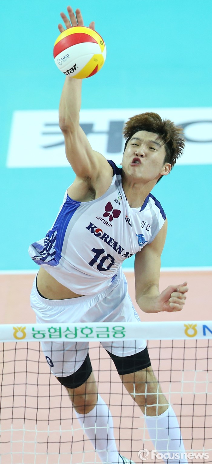(인천=포커스뉴스) 3일 인천 계양체육관에서 열린 '2015-2016NH농협 V-리그' 남자부 대한항공-삼성화재 경기에서 대한항공 정지석이 강스파이크를 하고 있다.