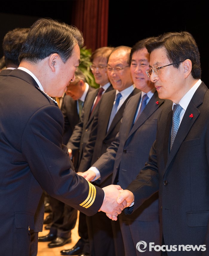 (세종=포커스뉴스) 황교안 국무총리와 각 부처 장관들이 4일 오전 세종시 정부세종청사 대강당에서 열린 2016년 정부시무식에 참석해 신년인사를 하고 있다.
