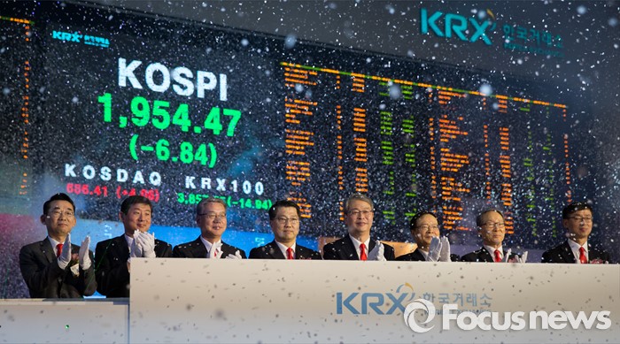 (서울=포커스뉴스) 병신년(丙申年) 새해 첫 증시 개장일인 4일 오전 영등포구 서울 여의도 거래소에서 2016년도 증권·파생상품시장 60주년 개장식이 열리고 있다