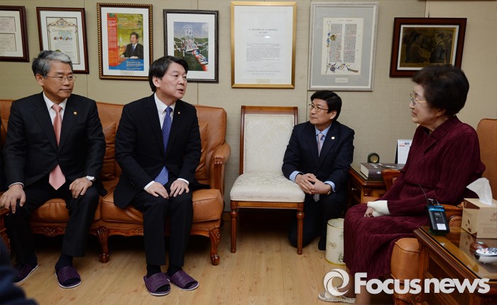 (서울=포커스뉴스) 신당 창당을 추진중인 무소속 안철수 의원이 4일 서울 동교동 고 김대중 전 대통령의 사저를 찾아 이희호 여사를 예방하고 새해 인사를 하고 있다.