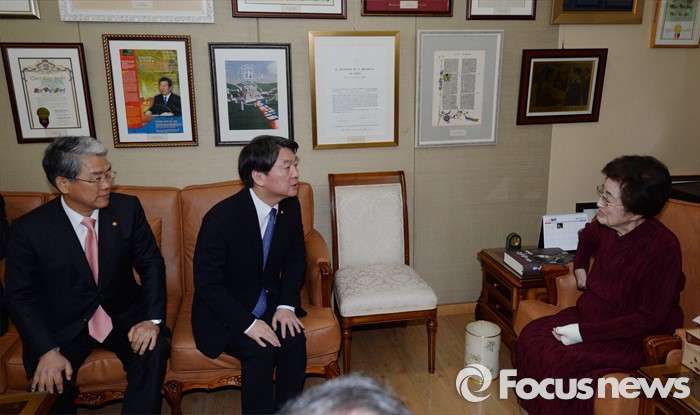 (서울=포커스뉴스) 신당 창당을 추진중인 무소속 안철수 의원이 4일 서울 동교동 고 김대중 전 대통령의 사저를 찾아 이희호 여사를 예방하고 새해 인사를 하고 있다.
