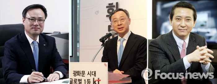 그러면서 "올해는 기가 인터넷과 같이 기존 사업에서도 새로운 시장이나 유통채널을 찾는데 매진할 계획"이라며 "이를 바탕으로 글로벌 1등이라는 비전을 구체화하는 해를 만들겠다"고 말했다.왼쪽부터 장동현 SK텔레콤 사장, 황창규 KT 사장, 권영수 LG유플러스 사장.<사진제공=이동통신 3사> 2015.12.24 왕해나 기자