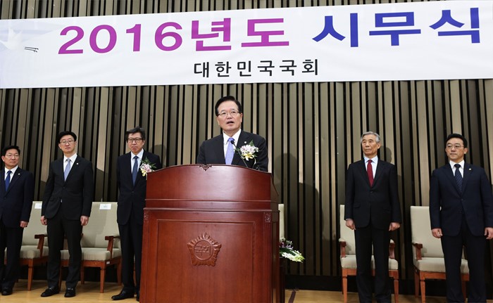 (서울=포커스뉴스) 정의화 국회의장이 4일 오전 서울 여의도 국회에서 열린 2016년 시무식에 참석해 인사말을 하고 있다. <사진제공=국회>