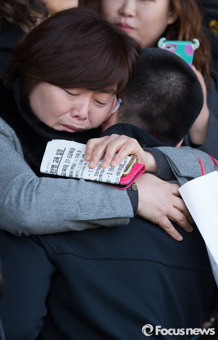 | △ 엄마와 포옹하는 입영장병 |