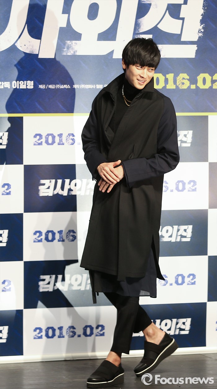 (서울=포커스뉴스) 4일 오후 서울 강남구 압구정 CGV에서 열린 영화 '검사외전' 제작보고회에 참석한 배우 강동원이 포토타임을 위해 이동하고 있다.