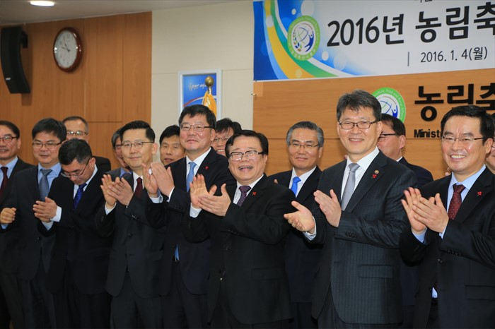 (세종=포커스뉴스) 이동필 농림축산식품부장관이 4일 세종시 정부세종청사 농식품부 대회의실에서 열린 시무식에 참석해 직원들과 박수를 치고 있다.