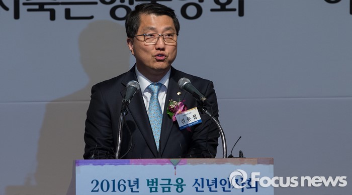 (서울=포커스뉴스) 5일 오후 서울 중구 롯데호텔에서 열린 '2016년 범금융 신년인사회'에 참석한 진웅섭 금융감독원장이 신년사를 하고 있다.