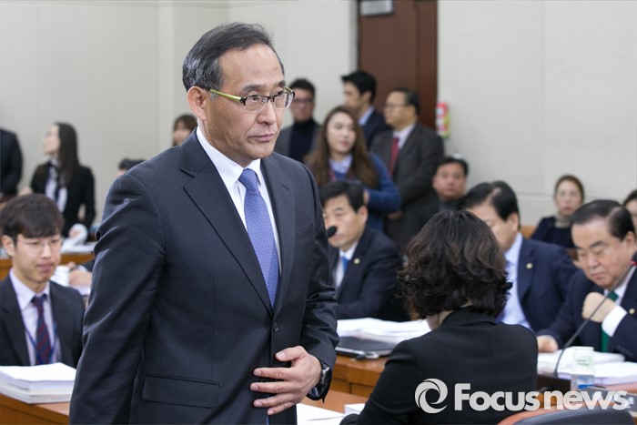 (서울=포커스뉴스) 홍윤식 행정자치부 장관 후보자가 6일 오전 서울 여의도 국회에서 열린 인사청문회에 출석해 선서문 제출 후, 자리로 향하고 있다.