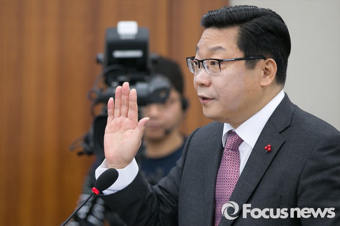 주 후보자는 “여러 부처가 관련된 융복합 신산업의 애로사항에 대해 산업부가 원스톱 해결창구가 되고 칸막이 규제를 정비하는 데 앞장서겠다”고 덧붙였다.(서울=포커스뉴스) 주형환 산업통상자원부 장관 후보자가 6일 오전 서울 여의도 국회에서 열린 인사청문회에 참석해 선서를 하고 있다. 2016.01.06 박동욱 기자