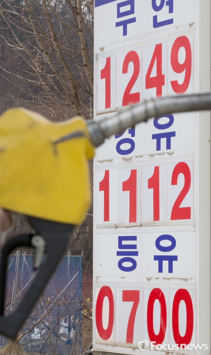 (음성=포커스뉴스) 국제유가 하락으로 휘발윳값이 7년 만에 최저가를 보인 가운데 6일 오전 11시 기준 충북 음성군 감곡면에 위치한 주유소에서 전국 최저가인 리터당 휘발유는 1249원, 경유는 1112원에 판매되고 있다.