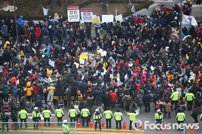 (서울=포커스뉴스) 24주년을 맞이한 일본군 위안부 문제해결을 위한 1212차 정기수요집회가 열린 6일 오후 서울 종로구 구 일본대사관 앞에서 참가자들이 집회에 참여하고 있다.