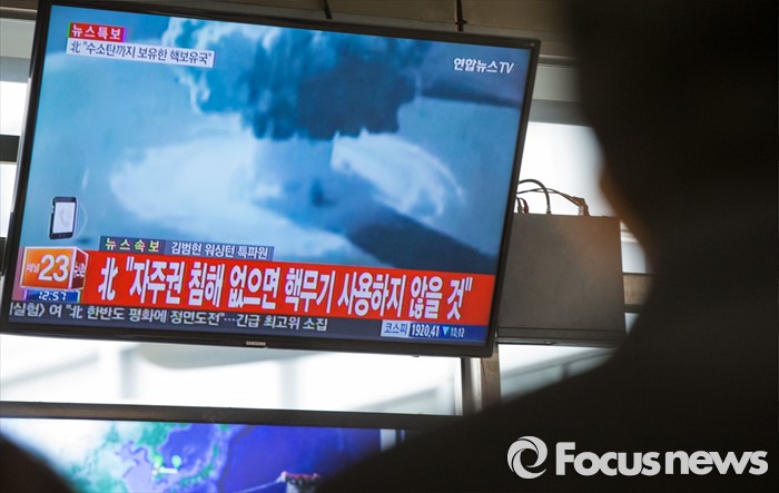 앞서 오전 10시30분경 북한 양강도 지역에서 규모 4.8수준의 지진이 감지되었으며, 12시30분 북한 조선중앙TV는 수소탄 핵실험을 실시했다고 보도했다.(서울=포커스뉴스) 북한이 첫 수소탄 핵실험을 실시했다고 발표한 6일 오후 서울 서초구 고속버스터미널에서 시민들이 이에 관련된 뉴스특보를 시청하고 있다. 2016.01.06 양지웅 기자