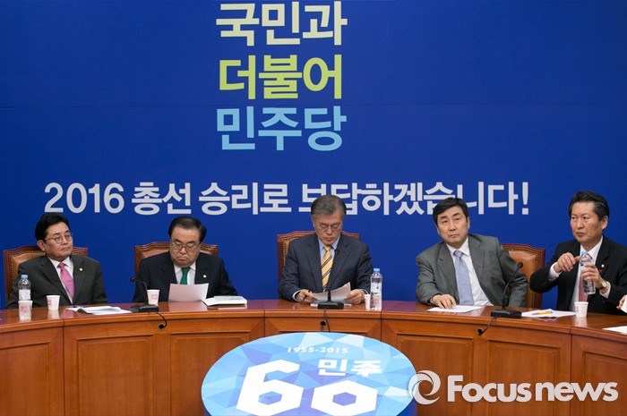 (서울=포커스뉴스) 6일 오후 서울 여의도 국회에서 북한 핵실험 관련 긴급 더불어민주당 최고위원 연석회의에 참석한 문재인 대표를 비롯한 의원들이 회의를 준비하고 있다.