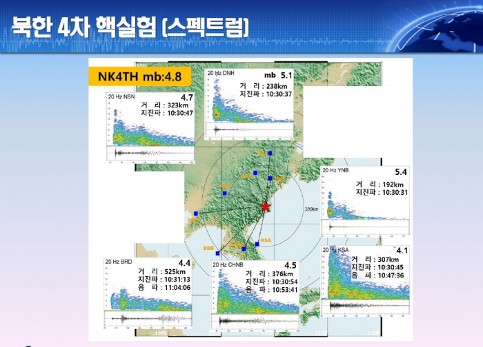 (서울=포커스뉴스) 북한이 4차 핵실험을 감행한 6일 오후 대전 유성구 한국지질자원연구원 지진연구센터에서 공개한 북한 4차 핵실험 자료. <사진제공=한국지질자원연구원 지진연구센터>