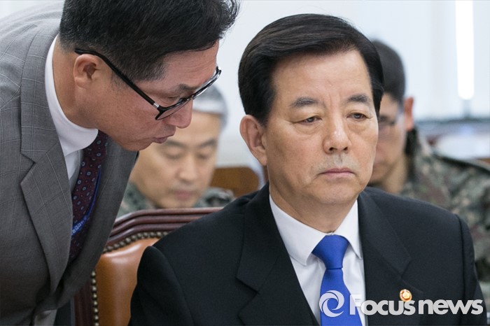 (서울=포커스뉴스) 한민구(오른쪽) 국방부 장관이 7일 오전 서울 여의도 국회에서 북한의 수소탄 핵실험과 관련해 열린 국방위원회 전체회의에 출석해 현안보고 전, 직원과 논의하고 있다.