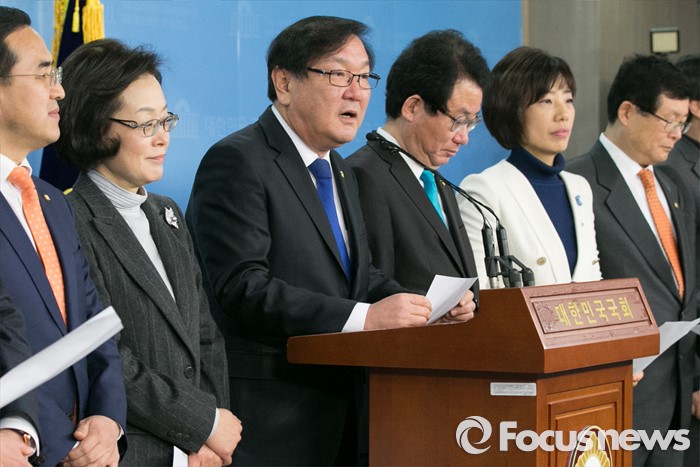 (서울=포커스뉴스) 김태년(왼쪽 세번째) 더불어민주당 의원을 비롯한 교육문화체육관광위원회 야당 위원들이 7일 오전 서울 여의도 국회 정론관에서 보육대란 현실화와 관련해, 정부·여당과 긴급 사회적 협의 기구를 구성할 것을 제안하는 기자회견을 하고 있다.