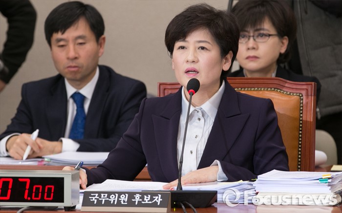 (서울=포커스뉴스) 강은희 여성가족부 장관 후보자가 7일 오전 서울 여의도 국회에서 열린 인사청문회에 참석해 의원들의 질의에 답하고 있다.