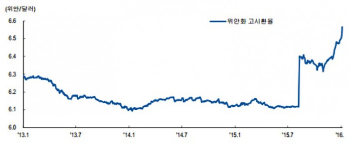 강현철 NH투자증권 연구원은 "작년 8월의 경험을 볼 때 며칠 간 인민은행이 위안화 추가 절하를 단행할 가능성이 크다"면서도 "위안화 이슈가 시장에 장기 악재로 작용하지는 않을 것"이라고 말했다.