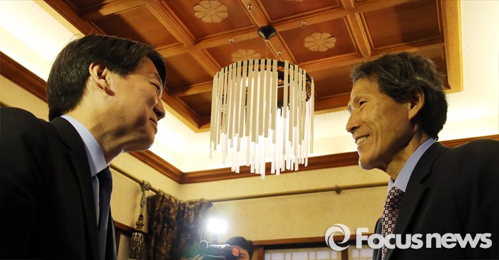 (서울=포커스뉴스) 더불어민주당 탈당 후 신당 창당을 준비하고 있는 안철수 무소속 의원이 7일 오후 서울 종로구 경운동 민다가헌에서 한상진 교수와 인사를 나누고 있다.