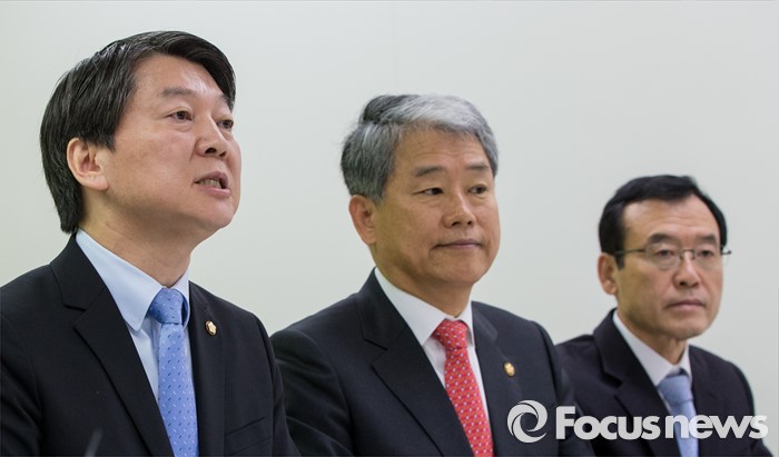 (서울=포커스뉴스) 8일 오전 서울 마포구 안철수 무소속 의원 당사 대회의실에서 열린 창당준비점검회의에 참석한 안 의원(맨 왼쪽)이 모두발언 하고 있다.