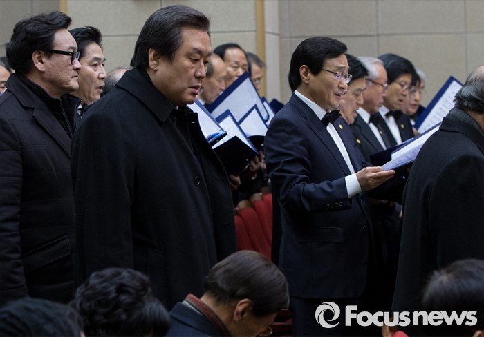(서울=포커스뉴스) 9일 오후 서울 동작구 국립현충원에서 열린 '김영삼 대통령 추모 부활 성시 기념예배'에 김무성 새누리당 대표가 참석하고 있다.
