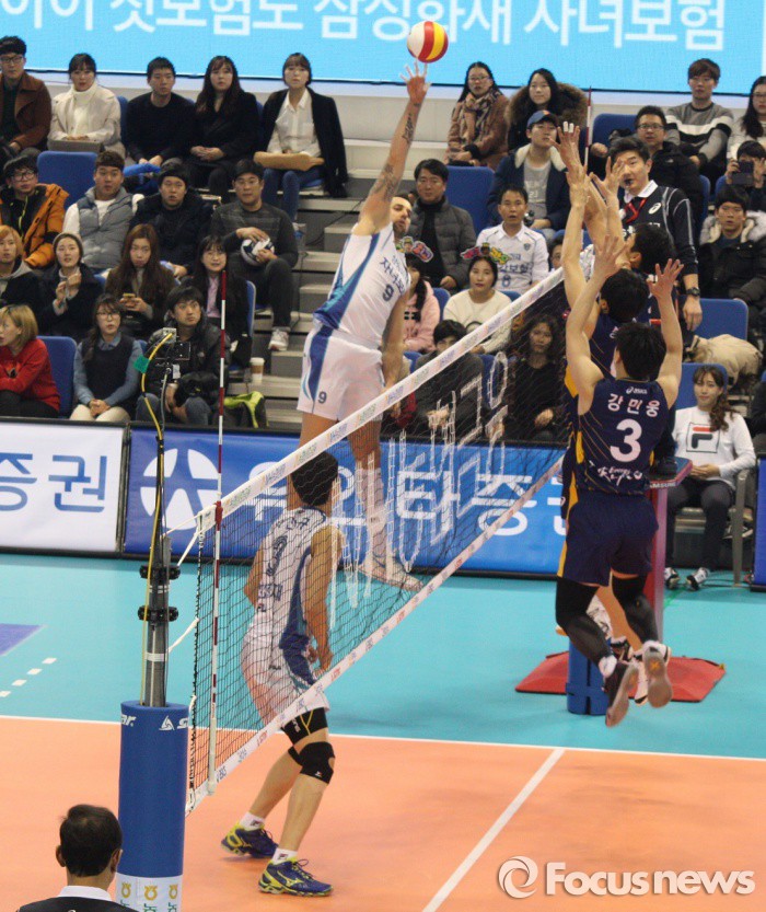 한편 유럽 예선 일정을 모두 마친 그로저는 곧바로 귀국길에 올라 소속팀 삼성화재에 합류할 예정이다. 그로저가 대표팀 일정을 소화하는 동안 삼성화재는 3경기를 치러 1승 2패를 거둔 바 있다.<사진=차상엽 기자> 삼성화재 그로저가 지난해 12월29일 오후 대전 충무체육관에서 열린 한국전력과의 NH농협 2015-2016 V-리그 남자부 4라운드 홈경기에서 500번째 득점을 성공시키고 있다.