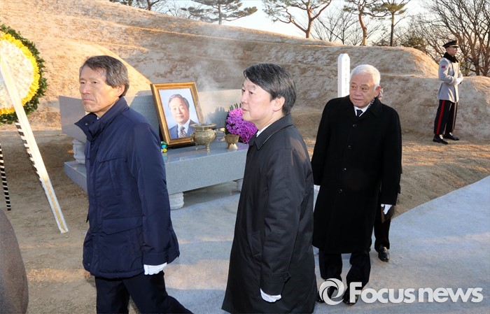 (서울=포커스뉴스) '국민의당' 창당을 추진하는 김한길(오른쪽부터), 안철수 의원과 한상진 공동창당준비위원장이 11일 오전 서울 동작구 국립서울현충원 故 김영삼 전 대통령 묘역을 방문해 참배를 마치고 이동하고 있다.