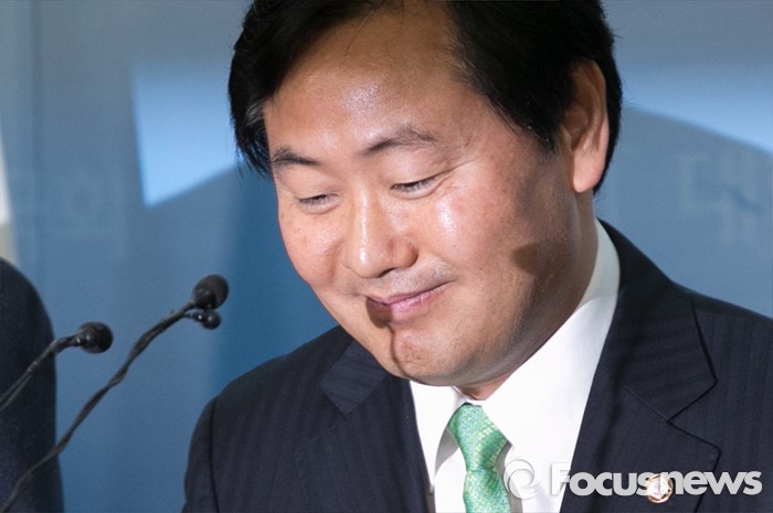 (서울=포커스뉴스) 김관영 더불어민주당 의원이 11일 오전 서울 여의도 국회 정론관에서 기자회견을 통해 탈당 표명 후, 미소짓고 있다.