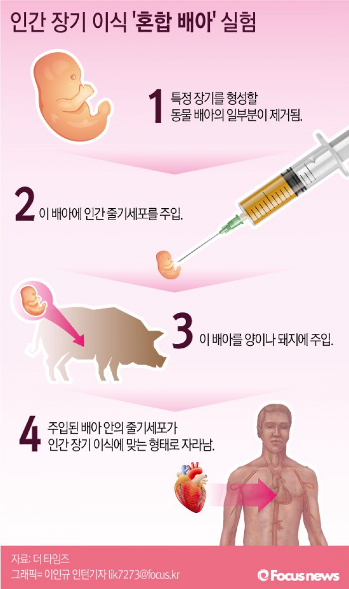 [그래픽] 인간 장기 이식 '혼합 배아' 실험