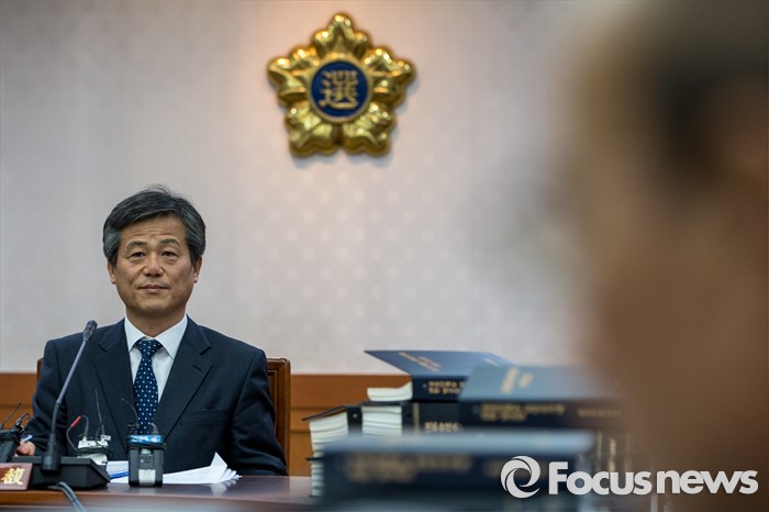 (과천=포커스뉴스) 이인복 중앙선거관리위원회 위원장이 11일 오후 경기도 과천시 중앙선거관리위원회에서 열린 전체회의에 자리해 회의를 주재하고 있다. 이날 이 위원장은 오는 4월 13일 총선 '선거구 실종' 장기화 사태에 따른 대책을 모색할 예정이다.