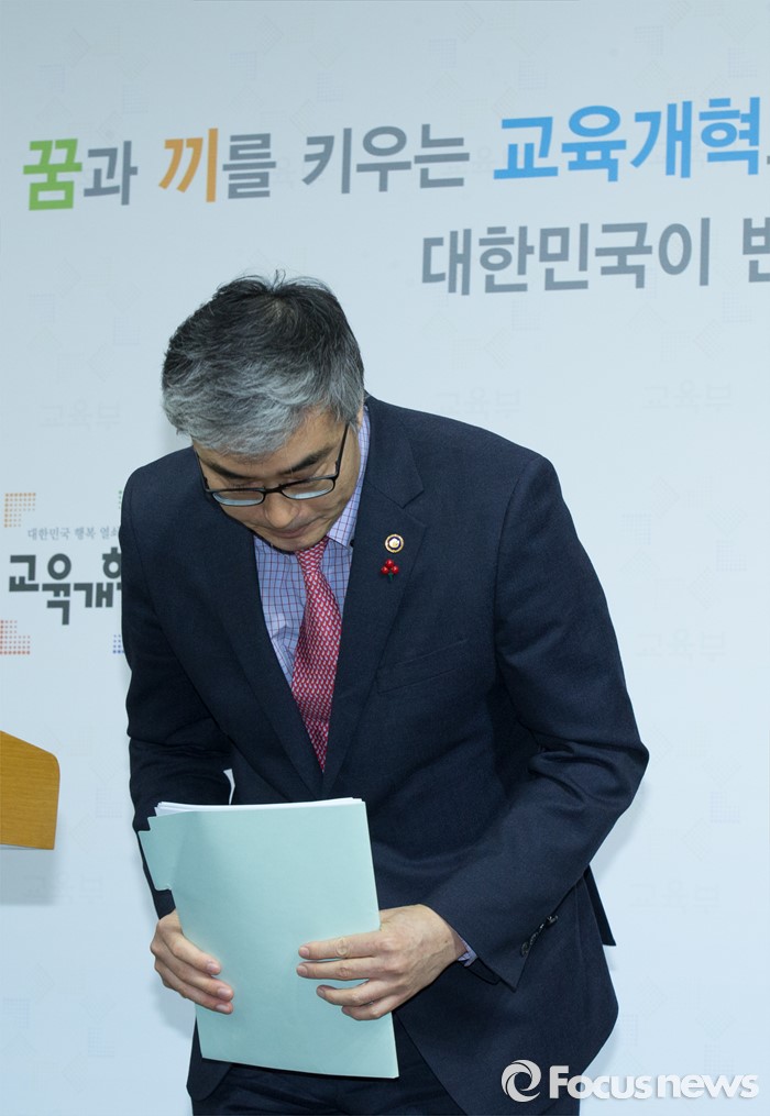 (세종=포커스뉴스) 이영 교육부 차관이 12일 오전 세종시 정부세종청사 교육부 공용브리핑룸에서 초등학교 3~6학년까지 방과후학교 연계형 돌봄교실을 운영하고 방학중 돌봄서비스를 확대하는 등 돌봄 공백 해소를 주요내용으로 하는 '2016년 초등돌봄교실 운영 방안'을 발표를 마치고 인사하고 있다.