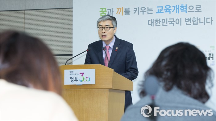 (세종=포커스뉴스) 이영 교육부 차관이 12일 오전 세종시 정부세종청사 교육부 공용브리핑룸에서 초등학교 3~6학년까지 방과후학교 연계형 돌봄교실을 운영하고 방학중 돌봄서비스를 확대하는 등 돌봄 공백 해소를 주요내용으로 하는 '2016년 초등돌봄교실 운영 방안'을 발표하고 있다.