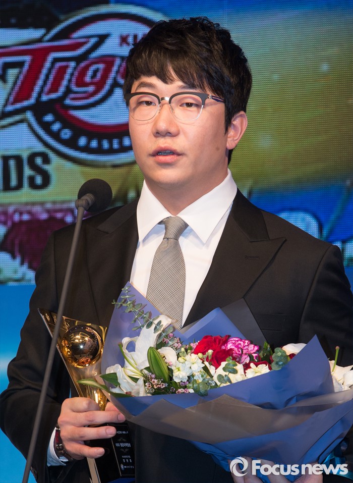 2014시즌 16승8패 평균자책점 4.25에 이어 2년 연속 15승 투수로 에이스 역할을 톡톡히 해냈다. 또 올시즌 뒤 프리에이전트(FA) 자격도 얻게 된다. 양현종은 "배려해주신 구단에 감사하다. 팀에 도움이 될 수 있도록 책임감을 가지고 올 시즌 준비를 철저히 하겠다"고 소감을 밝혔다.(서울=포커스뉴스) 24일 오후 서울 서초구 The-k호텔에서 열린 '2015 KBO 시상식'에서 평균자책점부문 1위를 차지한 양현종(KIA) 선수가 수상소감을 말하고 있다.2015.11.24 김흥구 기자