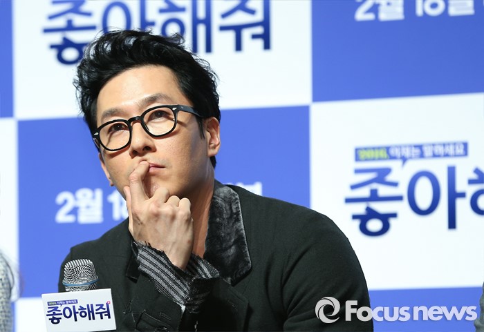 (서울=포커스뉴스) 12일 오전 서울 강남구 압구정 CGV에서 열린 영화 '좋아해줘' 제작보고회에 참석한 배우 김주혁이 취재진에게 질문을 받고 있다.