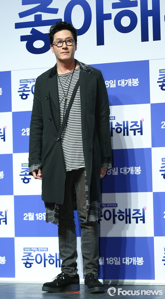 (서울=포커스뉴스) 12일 오전 서울 강남구 압구정 CGV에서 열린 영화 '좋아해줘' 제작보고회에 참석한 배우 김주혁이 포토타임을 갖고 있다.