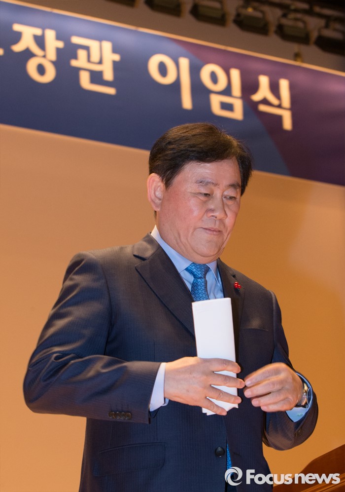 (세종=포커스뉴스) 최경환 경제부총리 겸 기획재정부장관이 12일 오후 세종시 정부세종청사 대강당에서 열린 이임식에서 이임사를 마치고 단상을 내려오고 있다.