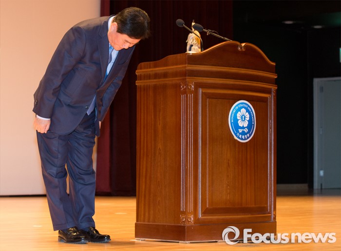 (세종=포커스뉴스) 최경환 경제부총리 겸 기획재정부장관이 12일 오후 세종시 정부세종청사 대강당에서 열린 이임식에서 인사를 하고 있다.