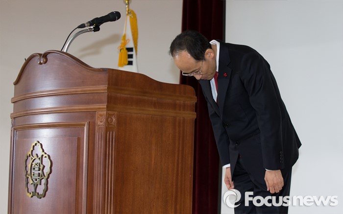 (세종=포커스뉴스) 추경호 국무조정실장이 12일 오후 세종시 정부세종청사 1동 대강당에서 열린 이임식에서 이임사를 마치고 인사를 하고 있다.
