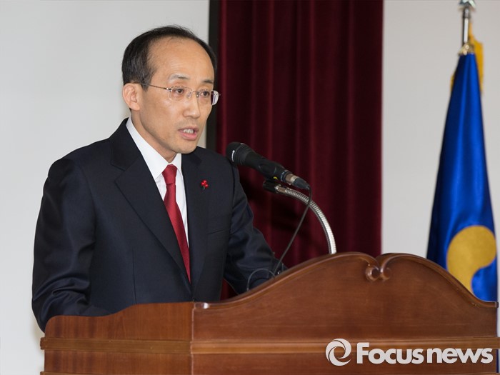 (세종=포커스뉴스) 추경호 국무조정실장이 12일 오후 세종시 정부세종청사 1동 대강당에서 열린 이임식에서 이임사를 하고 있다.