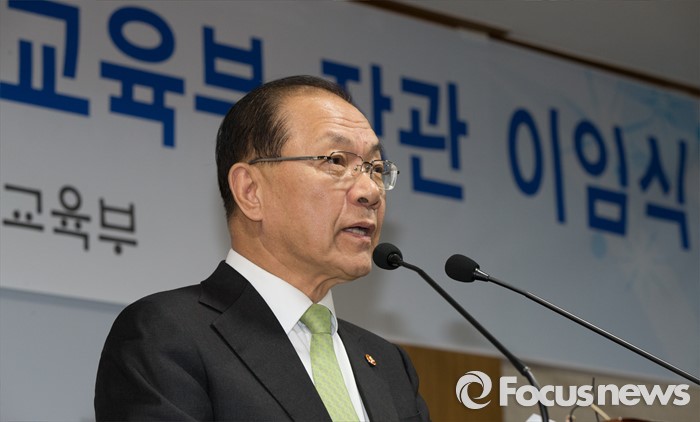 (세종=포커스뉴스) 황우여 사회부총리 겸 교육부장관이 12일 오후 세종시 정부세종청사 교육부 대회의실에서 열린 이임식에서 이임사를 하고 있다.