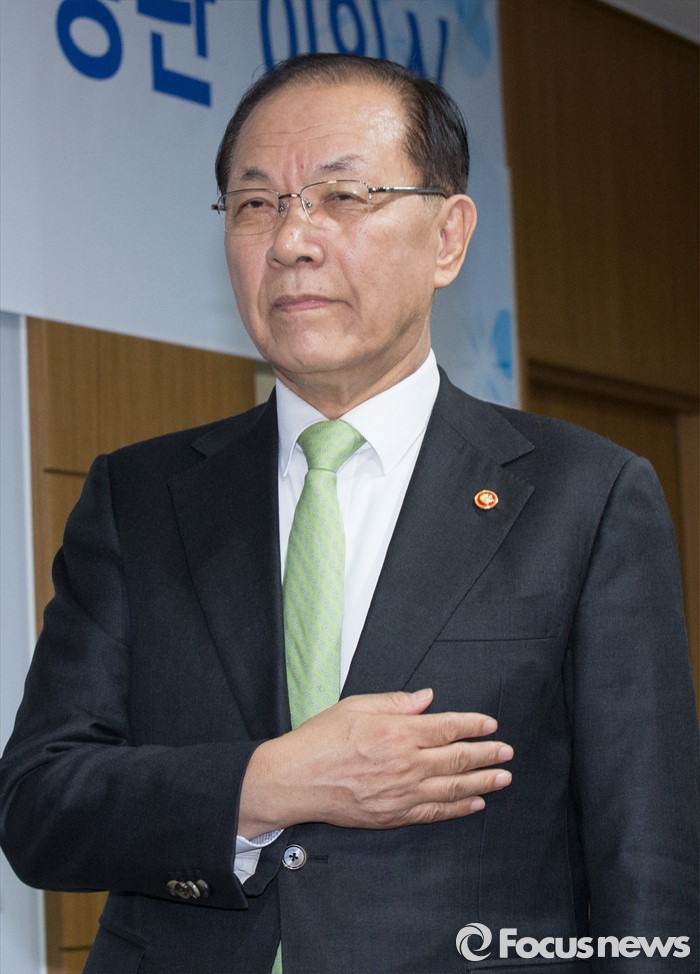 (세종=포커스뉴스) 황우여 사회부총리 겸 교육부장관이 12일 오후 세종시 정부세종청사 교육부 대회의실에서 열린 이임식에서 국기에 대한 경례를 하고 있다.