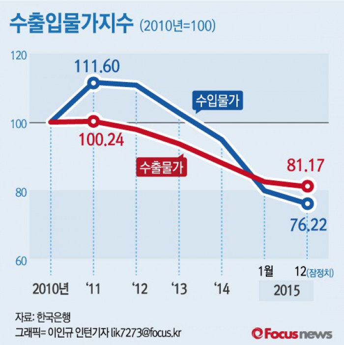 (서울=포커스뉴스) 원‧달러 환율 상승 등에 영향받아 지난달 수출물가는 올랐지만, 수입물가는 하락했다.