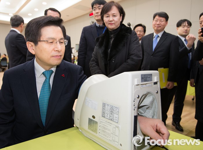 (세종=포커스뉴스) 황교안 국무총리가 13일 오후 세종시 정부세종청사 1동 대강당에서 열린 '국무총리실과 함께하는 사랑의 헌혈' 행사장을 방문해 헌혈에 동참하는 직원과 적십자사 관계자들을 격려하던 중 혈압을 채크하고 있다.