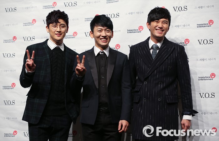 V.O.S의 미니앨범 '리 유니온, 더 리얼'은 더블 타이틀곡 '그 날'과 '그 사람이 너니까'를 비롯해 총 5곡으로 구성됐다. 14일 음원사이트를 통해 공개된다.(서울=포커스뉴스) 13일 오후 서울 강남구 일지아트홀에서 열린 남성 3인조 그룹 V.O.S의 미니앨범 'Re:Union, The Real' 쇼케이스에 참석한 멤버 최현준(왼쪽부터), 박지헌, 김경록이 포토타임을 갖고 있다. 2016.01.13 김유근 기자