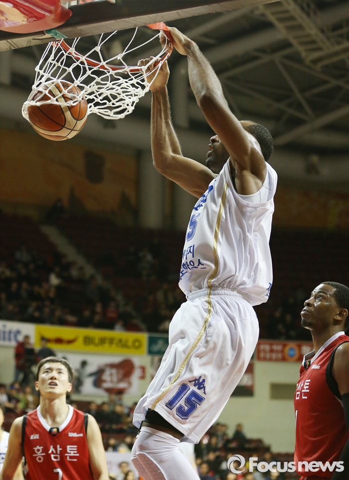 (안양=포커스뉴스) 13일 안양실내체육관에서 열린 2015-2016 프로농구 KGC-KCC 경기에서 KCC 허버트 힐이 덩크슛을 넣고 있다.